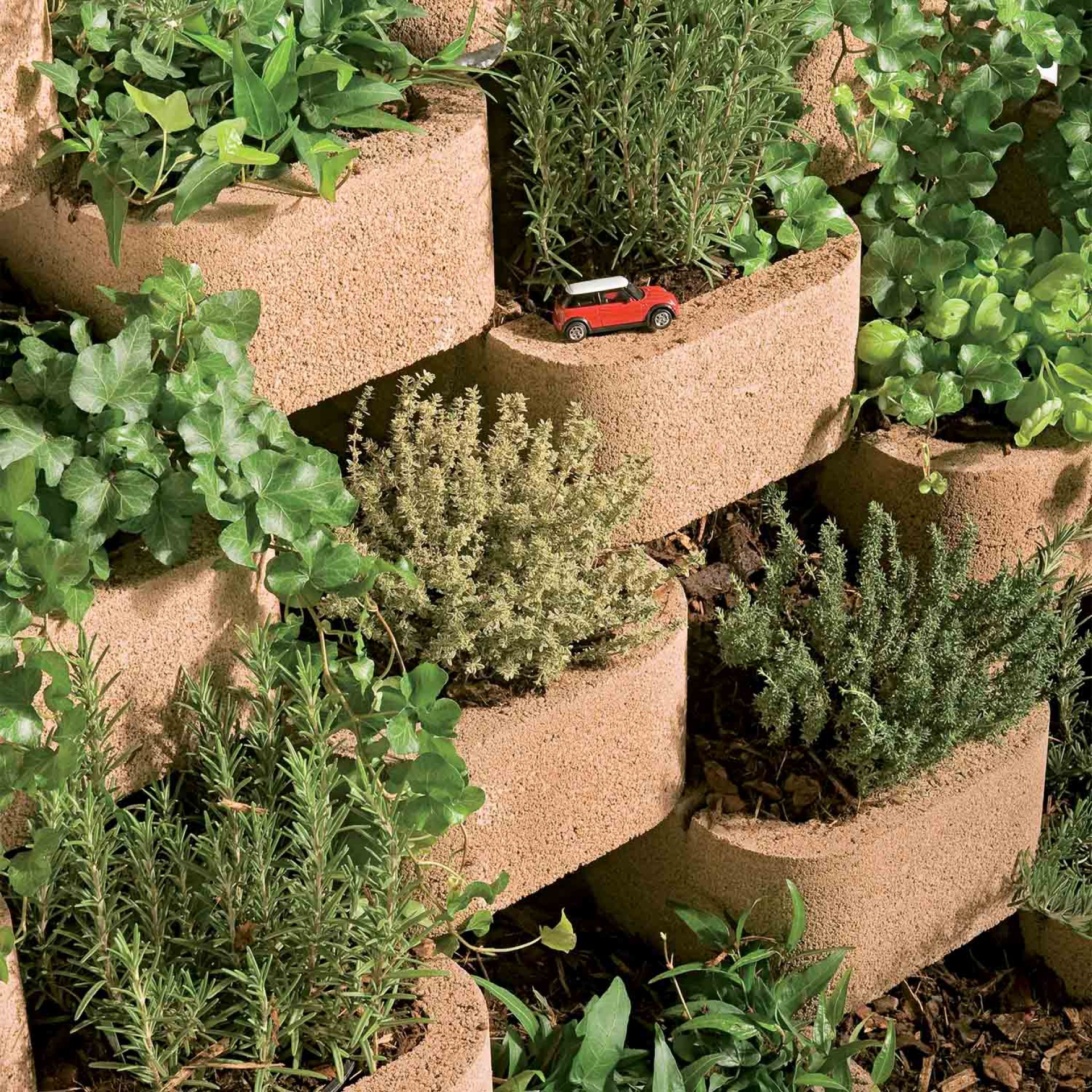 - Az elemek lépcsőzetes egymásra építésével kialakuló térrendszer kedvez a növényeknek